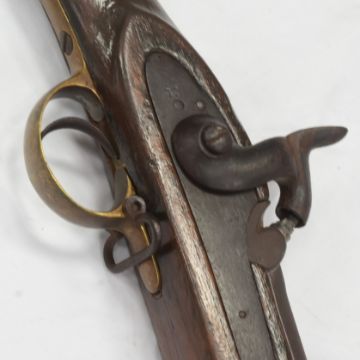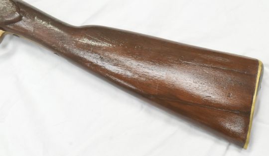 A 19th Century Victorian Enfield Pattern 1853 Type III three-band percussion cap musket rifle with socket bayonet. The rifle having walnut stock, brass trigger guard and butt plate, smooth bore barrel and cleaning rod. Measures approx 140cm.