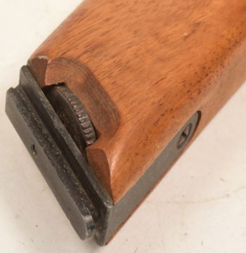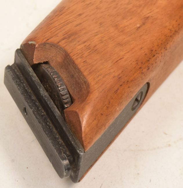 A believed replica Broom Handle Mauser C96 Standard Commercial 7.63 Semi automatic pistol butt with button release to reveal interior storage. Measures approx 37cm.