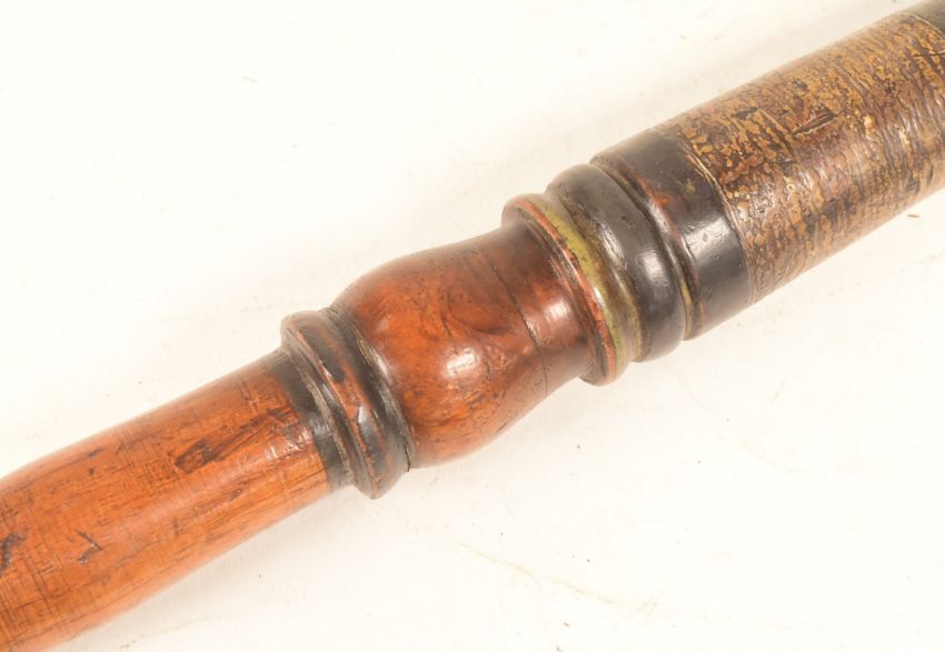 An early 20th Century Indian Elephant Goad / Bullhook / Ankus / Ankush having a carved wooden shaft with white metal lozenges, square section spike and a hooked tail. Measures approx 56cm.