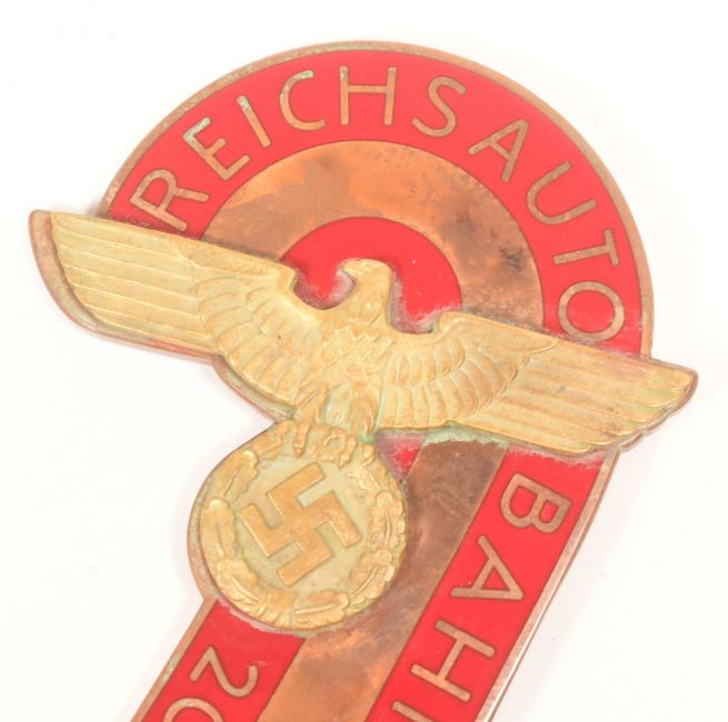 A WWII Second World War Third Reich Nazi German award to persons who worked on the Autobahn "Hitler Highway". The award being a nickel alloy with separately applied eagle and swastika device and winged wheel below. This example awarded for the completion of 2000 kilometers of the German autobahn. Measures approx 11cm.