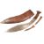 A WWII Second World War Nepalese / Gurkha Military Kukri knife dagger having a carved wooden grip and a heavy curved blade with double fullers housed in a leather clad scabbard. Retaining smaller Karda & Chakmak knives. Measures approx 43cm.