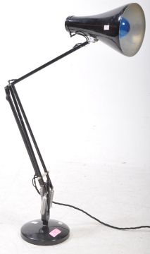 Herbert Terry & Sons - Anglepoise - A vintage mid 20th century work factory desk / table lamp light. The lamp having been painted in black colourway with adjustable shade and neck raised on circular base. Sold as untested. Measures approx: 50x50x15cm
