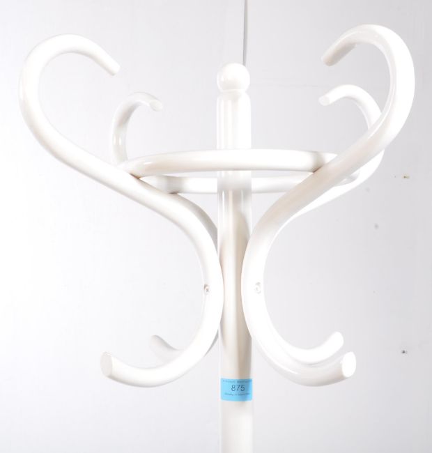 Thonet style painted bentwood coat stand / rack. With bentwood hooks, central column with four point splayed feet united by circular stretcher.