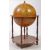 A 20th Century vintage terrestrial mahogany veneer globe drinks cabinet with hinged lid to reveal decanter cocktail cabinet, atop turned supports and castors with finial top. Globe decorated with transfer printed map, wooden piece around the equator depicting illustrations of zodiac signs, and compass points decorating the lower tier. Measures approx: 94x54cm