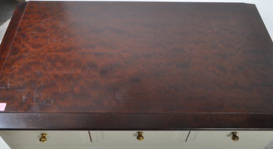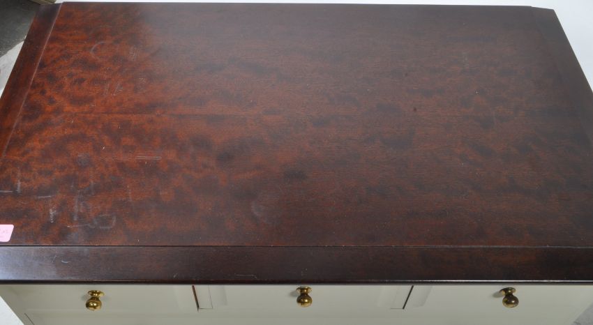 Stag - John & Sylvia Reid - A pair of vintage mid 20th century Stag Minstrel upcycled chest of drawers. Each having painted body, with short and deep drawers. Polished top above. Measures approx: 72x82x47cm