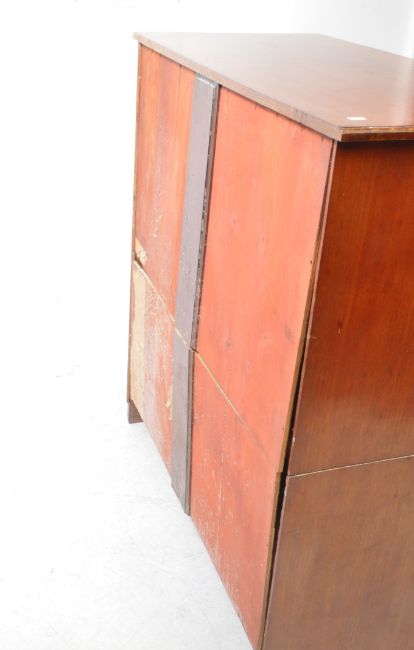 An early 20th century Edwardian mahogany chest of drawers. The chest of drawers raised on bracket feet, having a two short over three long drawer configuration. Each drawer featuring tramline carved detail and brass swing handles. AF Measures approx: 107x100x48cm