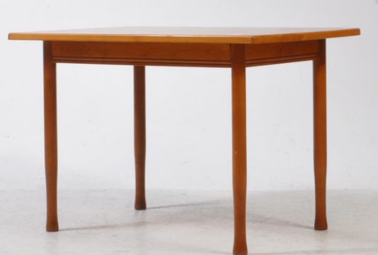 British Modern Design - A vintage mid 20th century teak coffee table. The table raised on tapered rounded supports. Having a top of rectangular form. Measures approx: 52x77x51cm