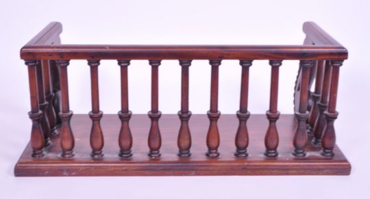 A Victorian style mahogany bookcase trough stand. The plinth base with Maltese dolphin uprights having a turned gallery surround having top rail above.