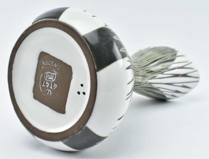 Mari Simmulson - a retro 20th century Swedish studio art ceramic vase. The vase in two-tone black and white of hour glass form with textured detailing. Makers marks to the base.