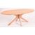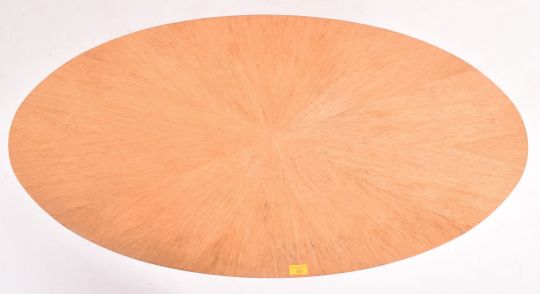 A contemporary designer light oak coffee table / low table. The table having an oval top raised on four Atomic spider leg supports.