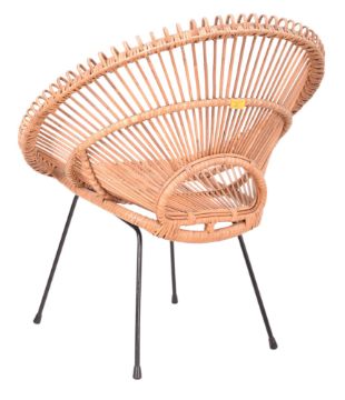 Franco Albini & Janine Abraham - an Italian Modern Design retro mid 20th century wicker and bamboo sunburst lounge chair. All raised on metal black supports.