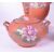 A collection of 19th century Rosso Antico tableware items. To include cloche, water jugs, teapot, twin handled vase with lid and flat bottom vase. Hand painted enemalled floral decoration on terracotta construction. AF.