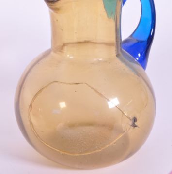 Collection of 19th and 20th century glass pieces. Examples include a Victorian 19th century cranberry jug and small vase, an Isles of Wight glass paperweight, two glass bells, a green and pink drink stirrer, and more.