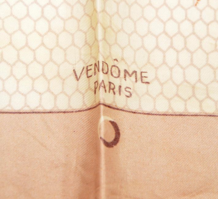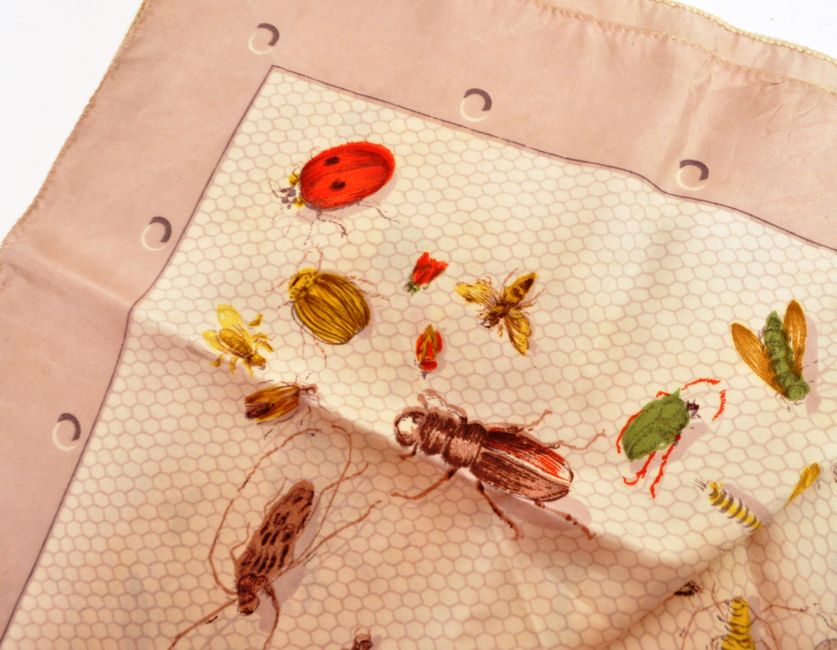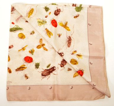 Vendome, Paris - A vintage 20th century French silk scarf. The scarf having mauve border, with honeycomb print featuring insect designs atop.
