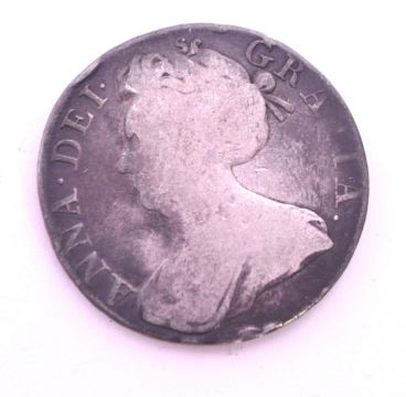 A 18th century 1708 Queen Anne post union silver crown coin. The coin having Queen Anne second bust (left) to obverse, with Crowned cruciform shields with central Garter star to reverse. Of .925 silver composition, weighing approx. 29.3g