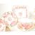 Early 20th century porcelain china part tea service. Comprised of three tea cups, five saucers, eleven small plates, two milk jugs, sugar pot, two serving tray dishes and six larger saucers. All decorated in a pink rose and gilt transfer design.