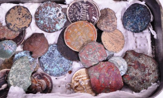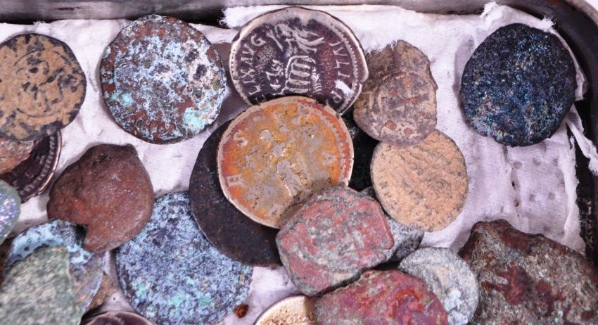 A collection of ancient Roman coins. Including 2nd century BC Roman Republic Denarius, Julia domma AD193-217, 394-400 AD Roman Imperial arcadius AE follis Antoich mint victory crowning coin and others. Including worn ancient token / artifacts.