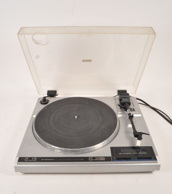 Pioneer - Vintage 20th century full automatic turntable record player, model number PL-560. With plastic hinged lid with a Dynamic Resonance Absorber tone arm.