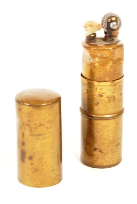 The Parr MFG Co. - A vintage 20th century circa 1940s French petrol pocket lighter. The lighter having a brass case, with removable lid revealing a flint wheel and wick.