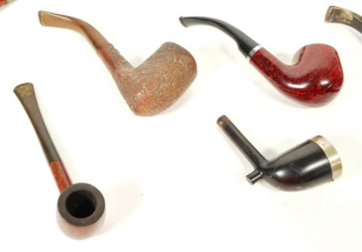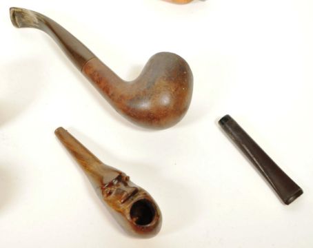 A collection of early to mid 20th century vintage tobacco smoking pipes. Including cases, carved face ceramic Dutch Zenith examples.