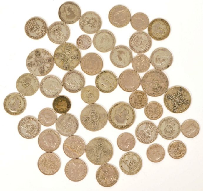 A collection of early and mid 20th century British circulated currency coins. The collection to feature .925, .500, and Cupro-Nickel examples. To include approximately 173g of silver coins.