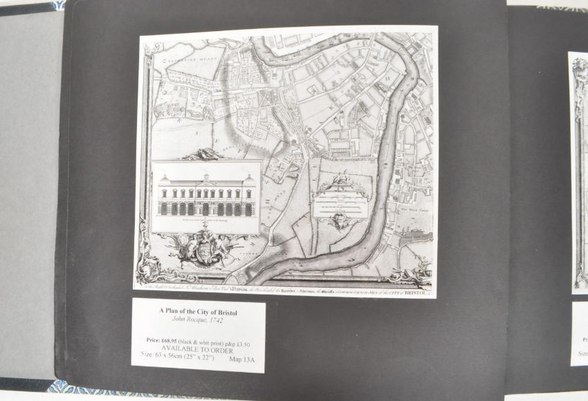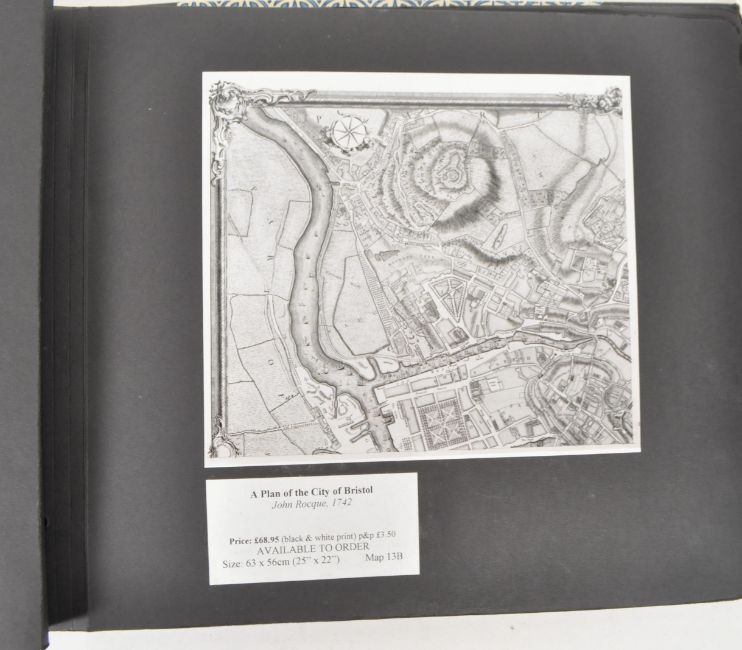 Bristol Museum and Art Gallery - Late 20th century book of photographs of maps from the collection at Bristol Museum. Including The Citte of Bristoll by James Millerd 1673, Brightstowe by Jois Hoefnagle 1581, This Map of Country 11 Miles Round The City of Bristol, no. 30 by Benjamin Donn the Elder 1769 and more. Measuring approx 31cm x 37cm.