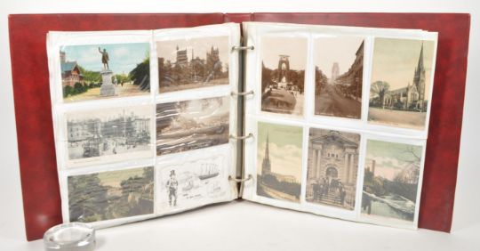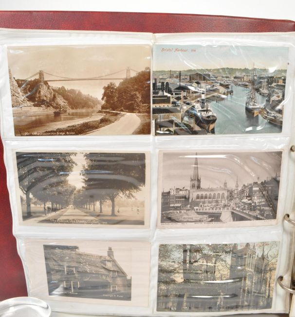 Collection of early 20th century Bristol related postcards. Including real photographs of locations such as the Clifton Suspension Bridge, The Avenue, The Downs, The Village in Weston In Gordano, Old Market Street and more. Approximately 78 postcards present. Housed within an album.