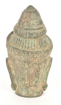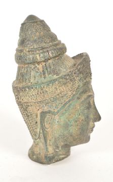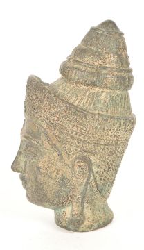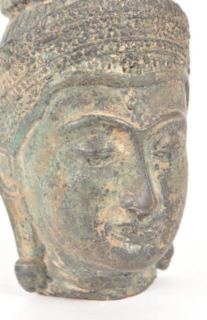 A 19th Century Chinese / Thai bronze Buddha head / bust of Guanyin. Cast crowned headdress and detailed features with elongated lobes.