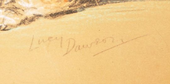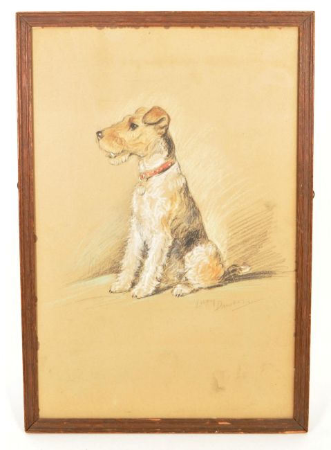 Lucy Dawson (1870 - 1954) - an original pastel artwork by British illustrator Lucy Dawson, depicting a wire haired fox terrier dog. Framed and signed to bottom right. 38cm x 26cm approx.