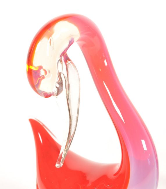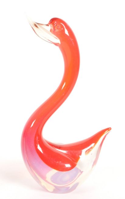 Antonio Da Ros for Cenedese - Two 1960s Murano Sommerso red glass duck / swan figures. One featured with it's head raised up, and the other with it's head dipping down. Both in a red colourway with opalescent undersides. No makers marks. Largest measuring approx. 21cm tall.