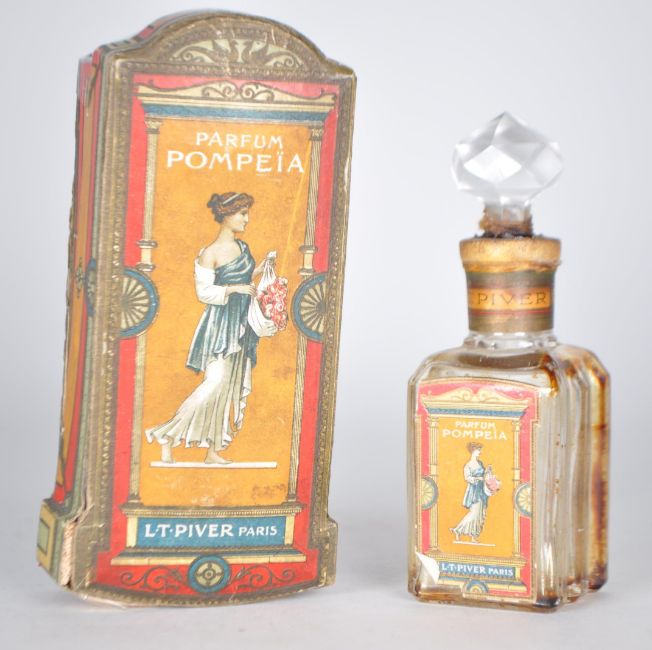 Early 20th century French " Parfum Pompeia " perfume bottle by LT Piver of Paris, circa 1907. Retailed originally in the 18th century by French perfumeries who supplied the Royals. Box measures approx. 13.5cm height, bottle 11.5cm height approx.