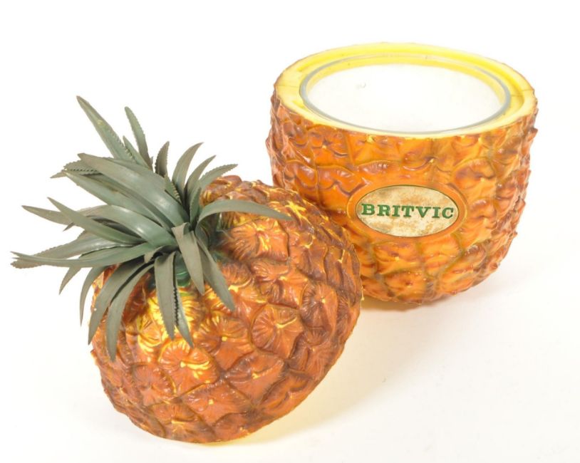 Britvic - A retro 1970s pineapple form ice bucket. With branded plaque to front pineapple form with glass interior.