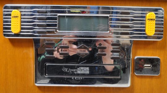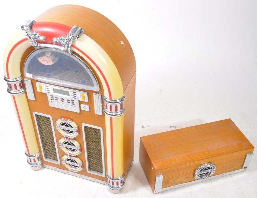 Steepletone - Late 20th century CD rock zero 50 floor standing jukebox player. Features a CD disc slot, a USB port, a radio function and SD card slot.