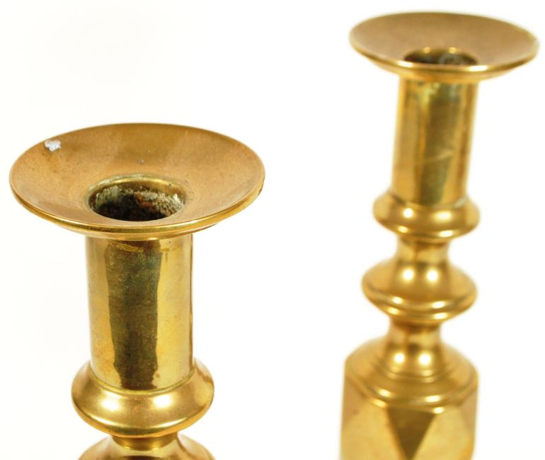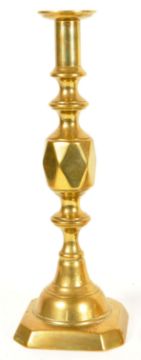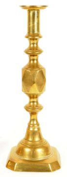 Late 19th century Victorian oversized beehive brass candlestick holders. Featuring a part turned form raised on a square plinth style base. Measuring approx. 35cm.