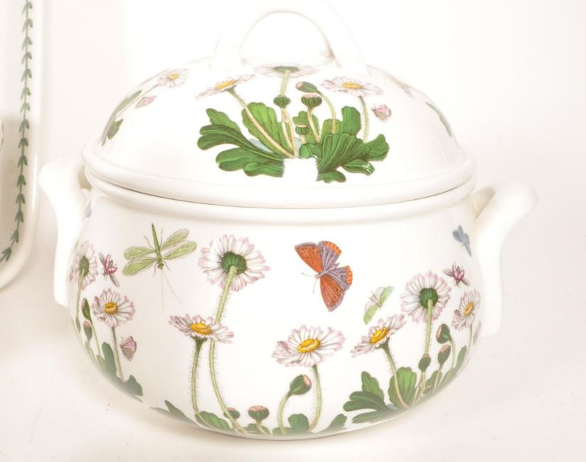 Portmeirion - Collection of late 20th century ceramic kitchen wares, the majority from The Botanic Garden collection. Comprised of a lidded twin handled pot, a mixing bowl, rolling pin, pepper grinder, serving dishes and butter dish.