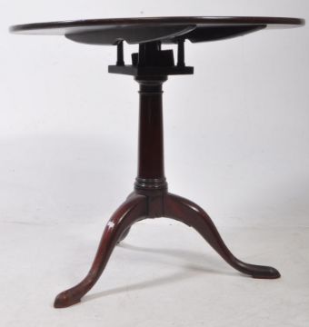 A 19th century Victorian mahogany tilt top side table. The table raised on a trio of cabriole legs below central rounded column, having rounded table top above.