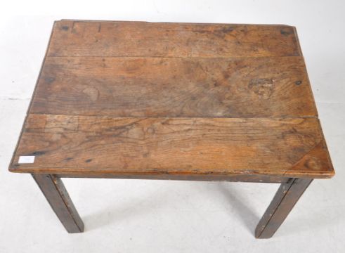 A 19th century oak French lowboy occasional table. Rectangular plank form top, on upright supports with surround frieze. Measures approx: 57x83x59cm