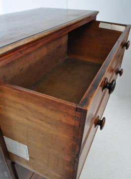 19th century mahogany large chest of drawers. Featuring rectangular top over five graduating drawers each with a key hole and two turned knob handles. All raised on bracket feet. Measures approx: 130x110x51cm