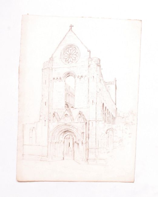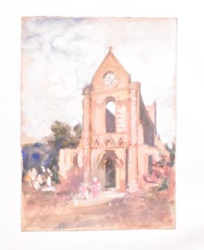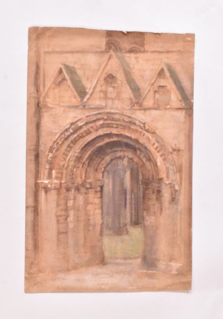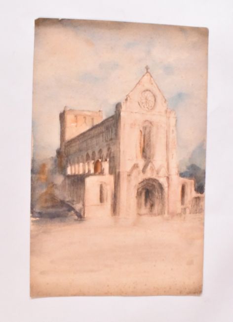 Alfred Edward Borthwick (1871-1955) - A collection of five early 20th-century en plein air watercolour on paper paintings of Jedburgh Abbey. The collection depicting different views of the Scottish abbey. Unsigned. Unframed.