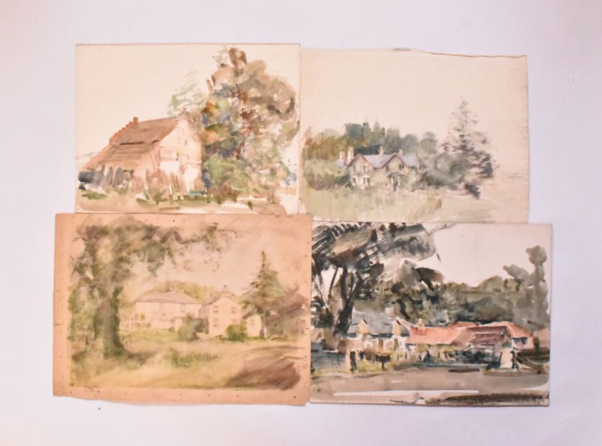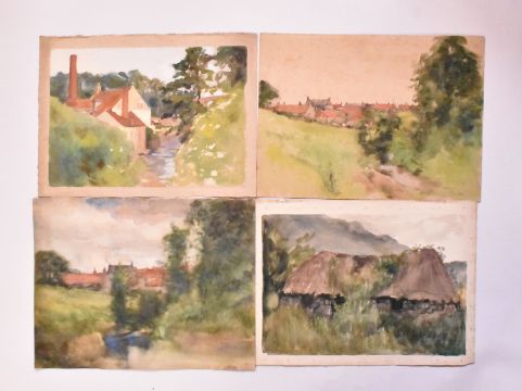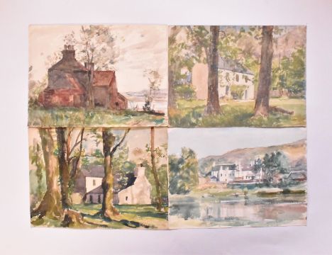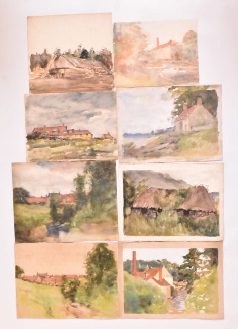 Alfred Edward Borthwick (1871-1955) - A collection of fifteen early 20th-century en plein air watercolour on paper landscape paintings. The collection depicting Scottish town views. The lot to include various towns depicted from various points of views at different times of the day. Each depicting close views of houses. Unsigned. Unframed.