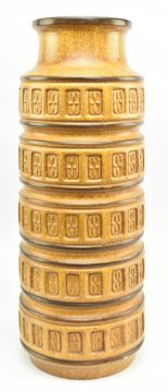 A vintage mid century circa 1970s West German pottery vase. The floor standing ceramic vase with ribbed design in speckled tan colourway. Marked W. Germany & with pattern no. 268 - 51 to underside.