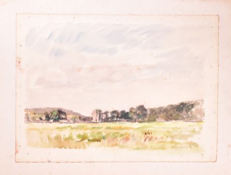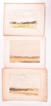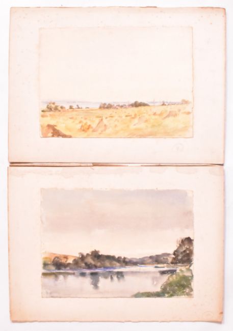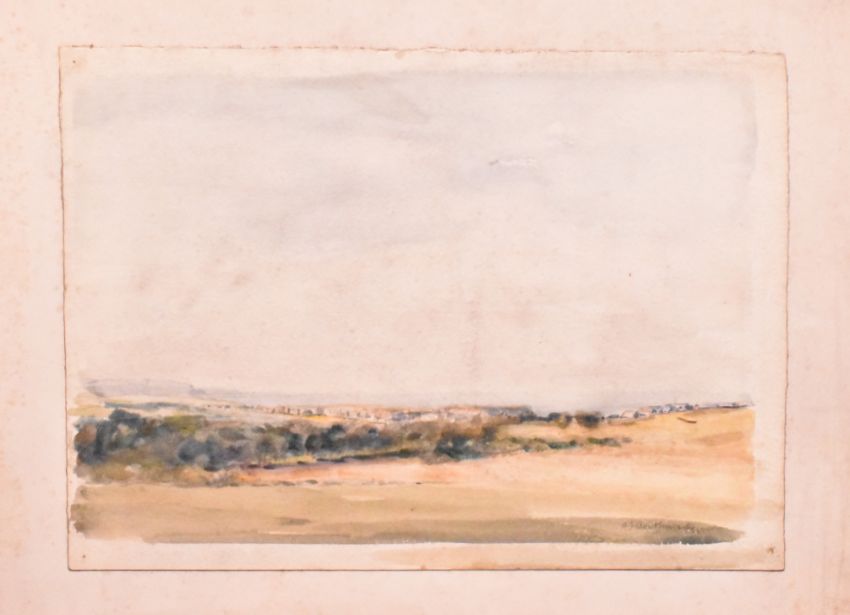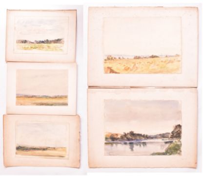 Alfred Edward Borthwick (1871-1955) - A collection of five early 20th century watercolour on paper paintings. The collection depicting Scottish landscapes with distant views of towns. Signed. Unframed.