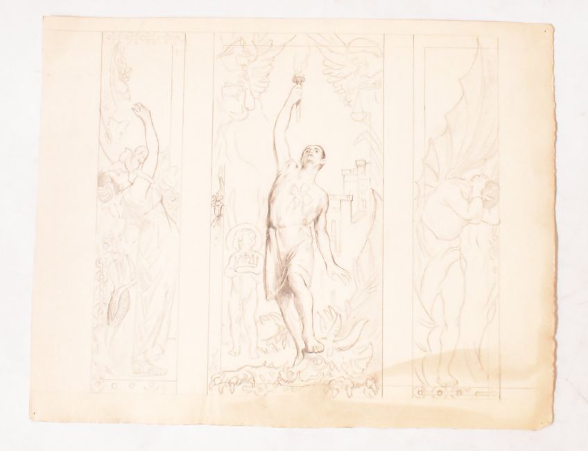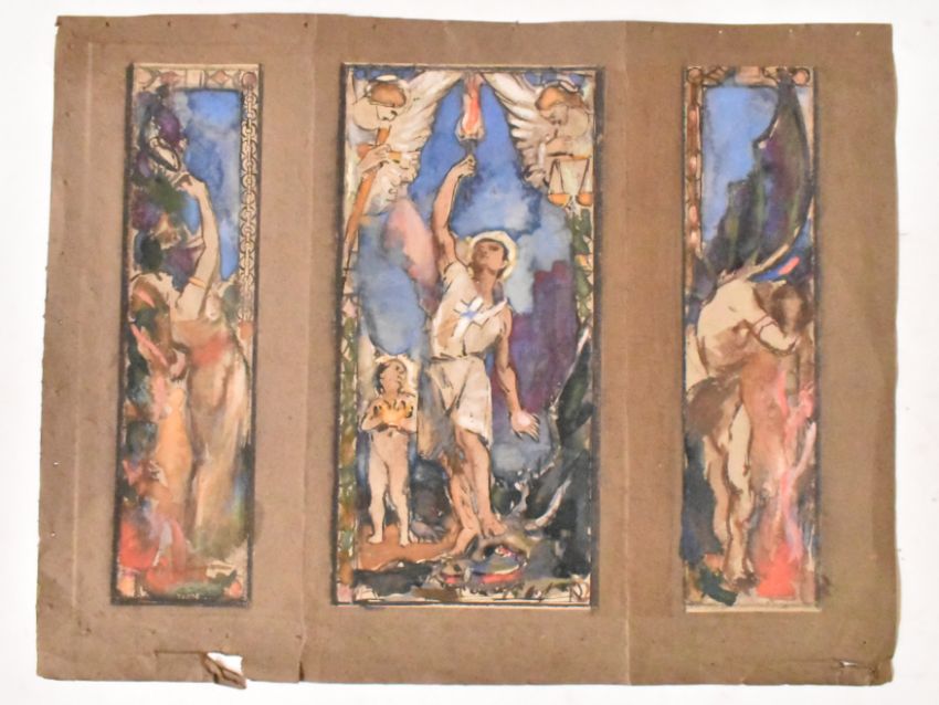 Alfred Edward Borthwick (1871-1955) - A collection of three early 20th century watercolour, pastel and gouache on paper triptych paintings. The collection depicting classical subjects. Unsigned. Unframed.