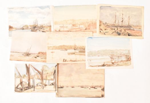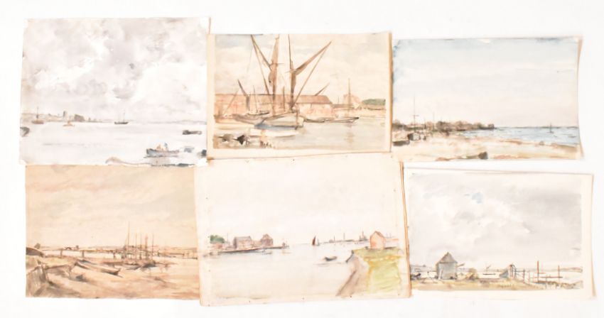 Alfred Edward Borthwick (1871-1955) - a collection of twelve early 20th century en plein air watercolour on paper maritime sea paintings. The collection depicting views of Scottish harbourside scenes & ships sailing. Unsigned. Unframed.