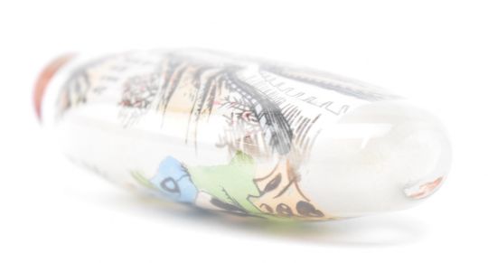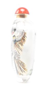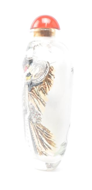 A 20th century Chinese reverse painted glass snuff bottle with panda design. The reverse painted with three pandas and the Great Wall of China with stopper.