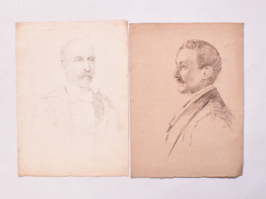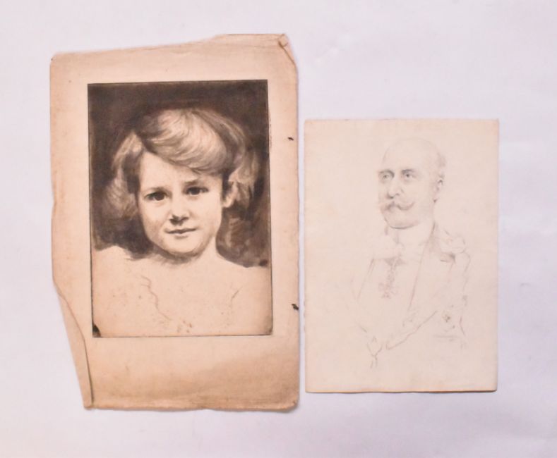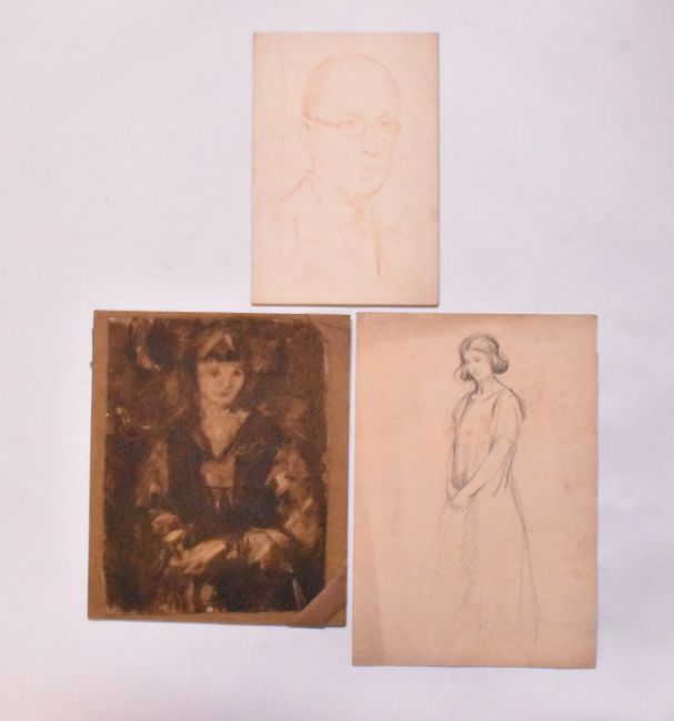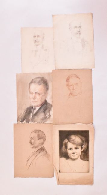Alfred Edward Borthwick (1871-1955) - A collection of eleven early 20th-century watercolour, charcoal, pencil & pastel on paper portrait paintings. The collection depicting various portraits, including of young girl, gent with glasses, military subjects etc. Unsigned. Unframed.