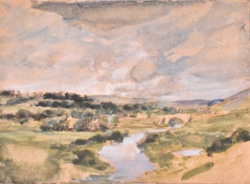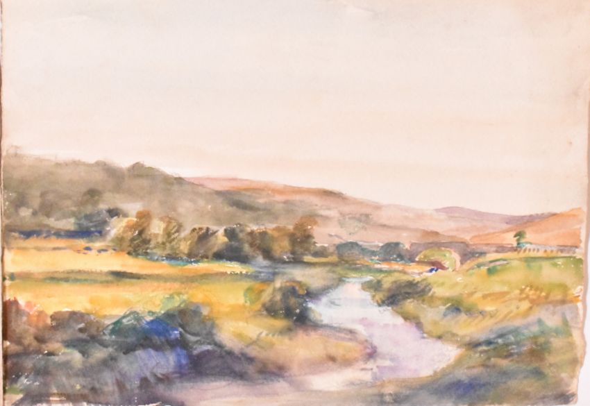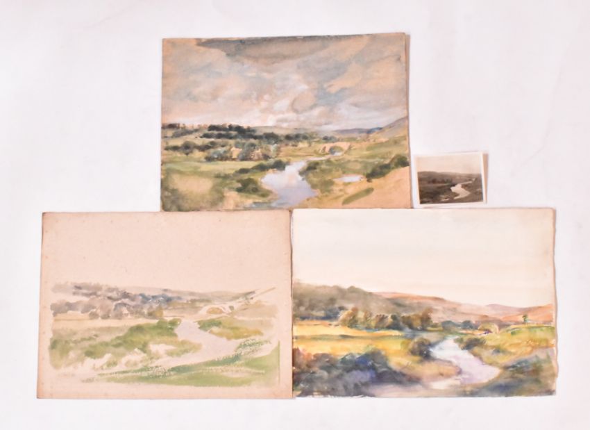 Alfred Edward Borthwick (1871-1955) - A collection of three early 20th-century en plein air watercolour on paper paintings of Burnhouse from Gates, Scotland. The collection depicting different studies & views. One signed. Unframed.