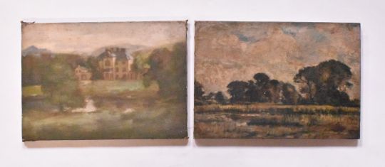 Alfred Edward Borthwick (1871-1955) - A pair of unsigned oil on canvas. Each painting depicting a country landscape scene. Unsigned. Unframed.