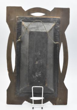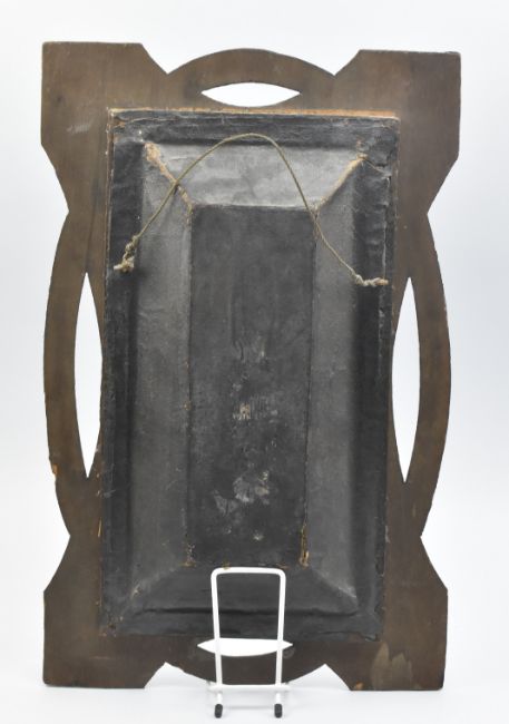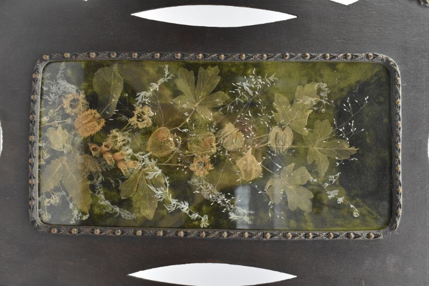An early 20th century dried flower diorama display presented in orig. carved plywood frame. The diorama featuring dried flowers such as physalis & oak leaves mounted on green velvet backdrop.