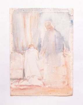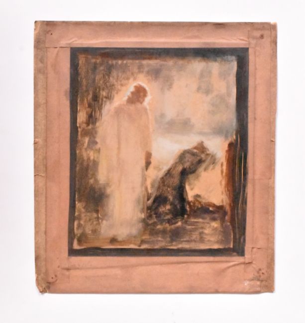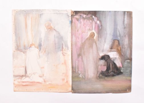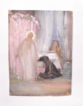 Alfred Edward Borthwick (1871-1955) - A collection of four early 20th century paintings. The collection including a gouache on glass study, together with watercolours and pastels on paper sketches for The Consoler oil on canvas painting. Unsigned. Unframed.